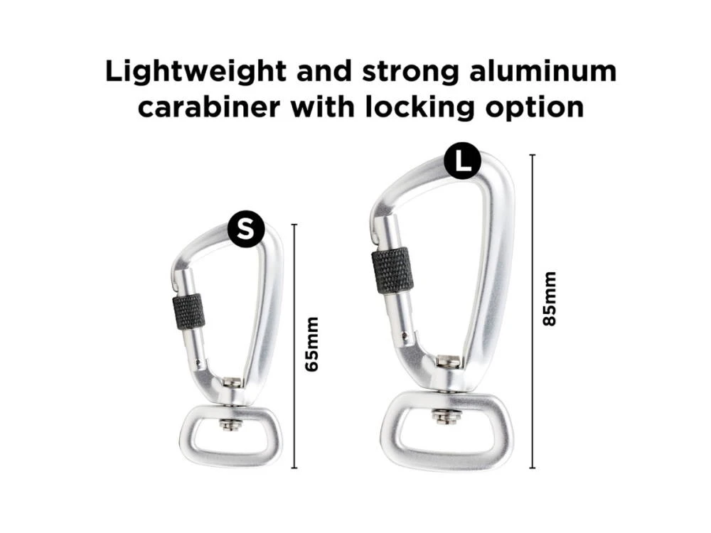 Hochreflektierende 3M™ Streifen und leichte Aluminiumkarabiner mit Verriegelungstechnik komplettieren diese außergewöhnliche Hundeleine.
