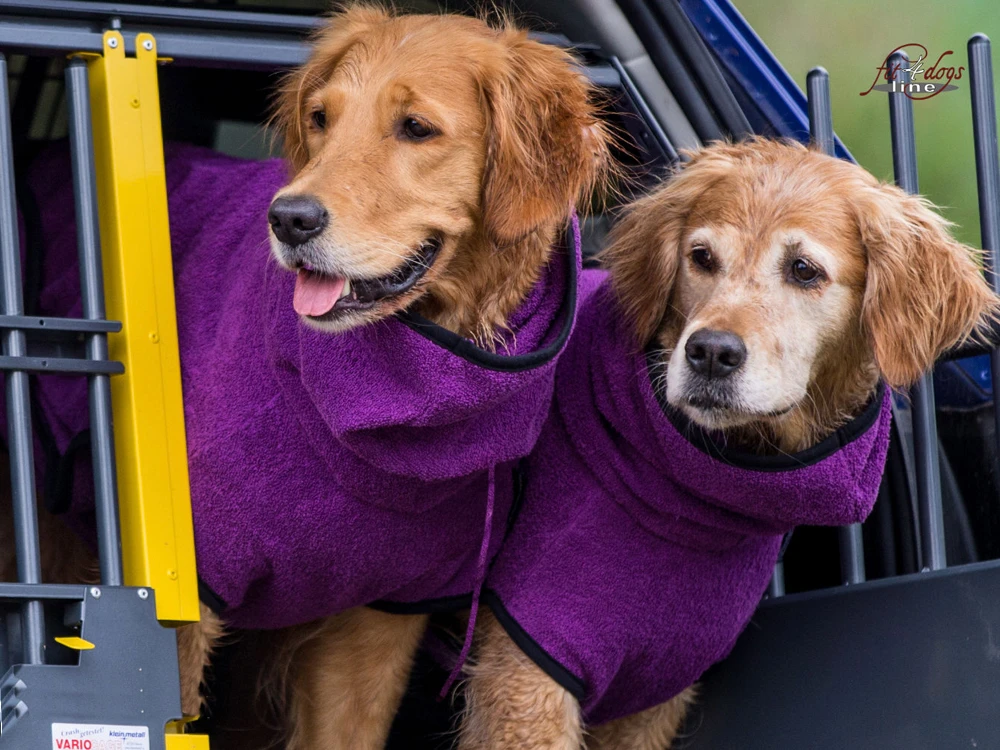 Einfach das Dryup Cape über den Kopf deines Hundes ziehen und dann über den Rücken legen und die Rute durch das dafür vorgesehene Loch am hinteren Ende des Capes ziehen. Anschließend wird die großzügige Bauchabdeckung zwischen den Vorderläufen durchgezogen und mit dem Bauchgurt geschlossen. So trocknet dein Hund angenehm schnell und Schmutz wird im Cape aufgenommen.