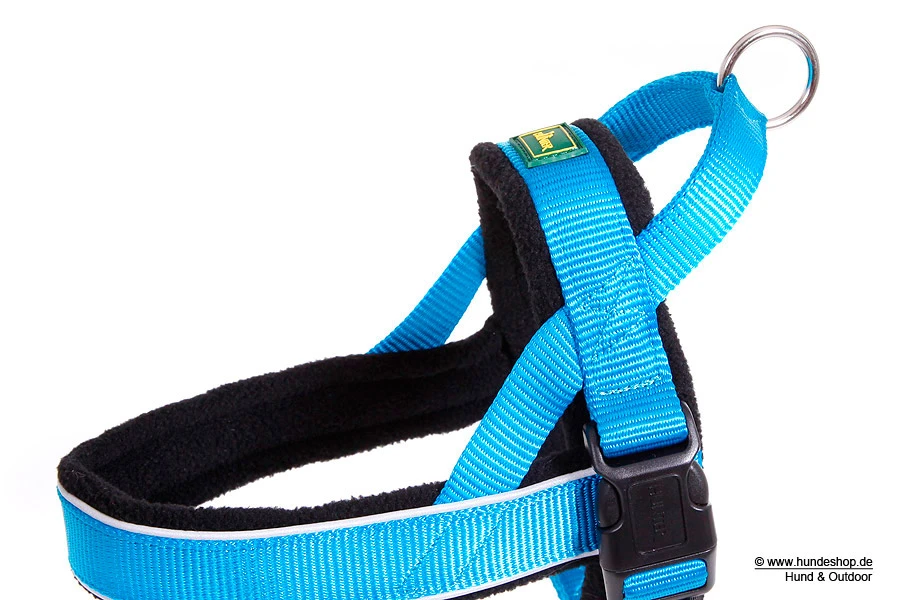 Im Brust-, Hals- und Schulterbereich großzügig mit weichem Fleece gepolstert ist das Hunter Norwegergeschirr Racing ideal nicht nur zum Gassi gehen sondern auch zum Joggen und Fahrradfahren.