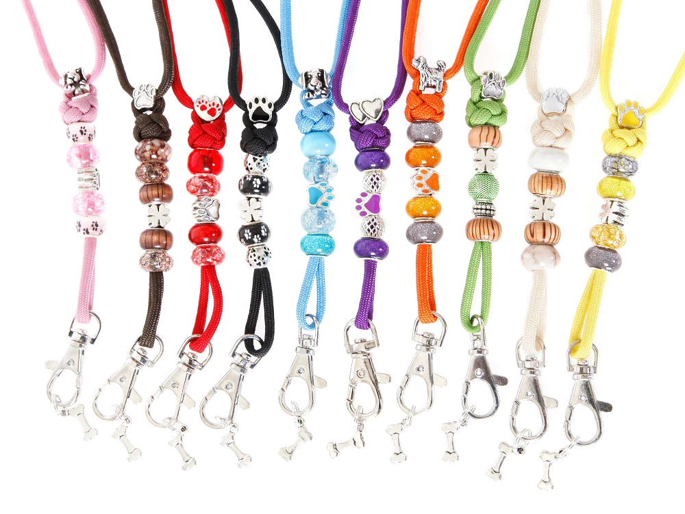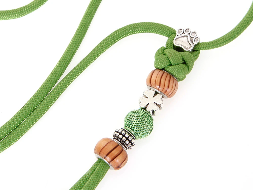 Material: 4 mm starkes Paracord 550 TYP III Band; Schmucksteine, Holz- und Schmuckperlen