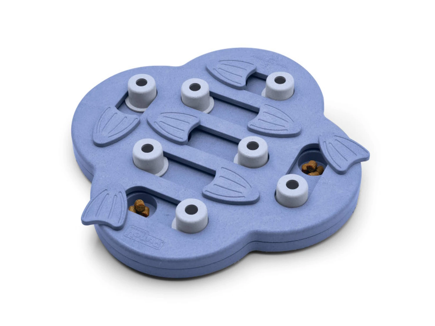 Hier können Leckerchen in die verschiebbaren runden Verstecke oder unter die Flossen gelegt werden. Nase, Pfoten und Köpfchen sind hier gefragt.