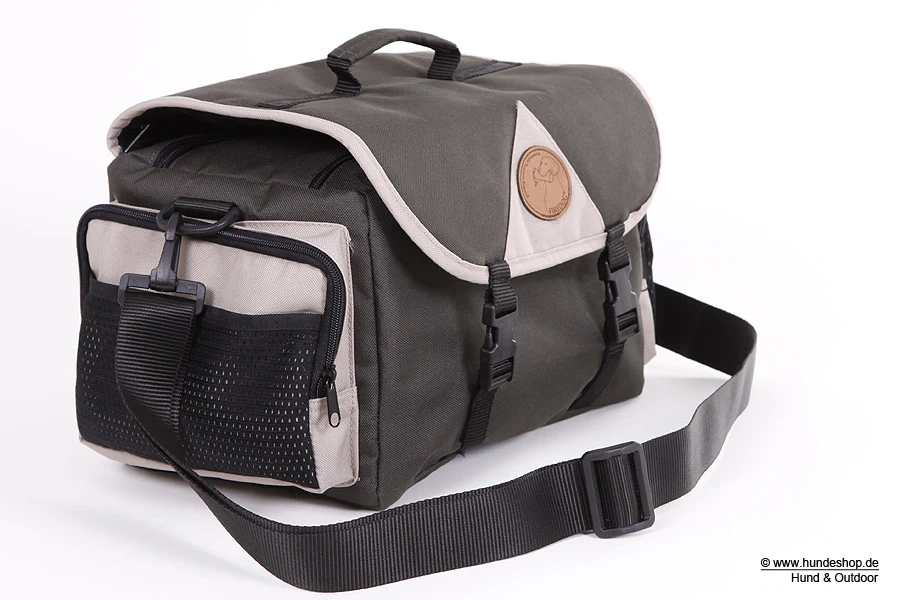 Die groĂźe VerschluĂźpatte ist mit Klett-, und SteckverschluĂź ausgestattet. Der Tragegriff und der abnehmbare, verstellbare Schultergurt machen die Features der Firedog Dummytasche TopTrainer komplett.