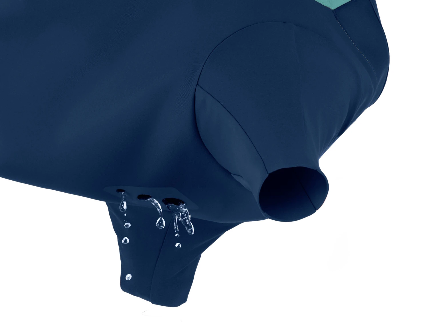 Im Bauchbereich sind kleine Drainageöffnungen, die das Wasser abfließen lassen. Reflektierende Elemente und eine Befestigungsschlaufe für das Blinklicht The Beacon™ zur besseren Sichtbarkeit sind ebenfalls eingearbeitet.