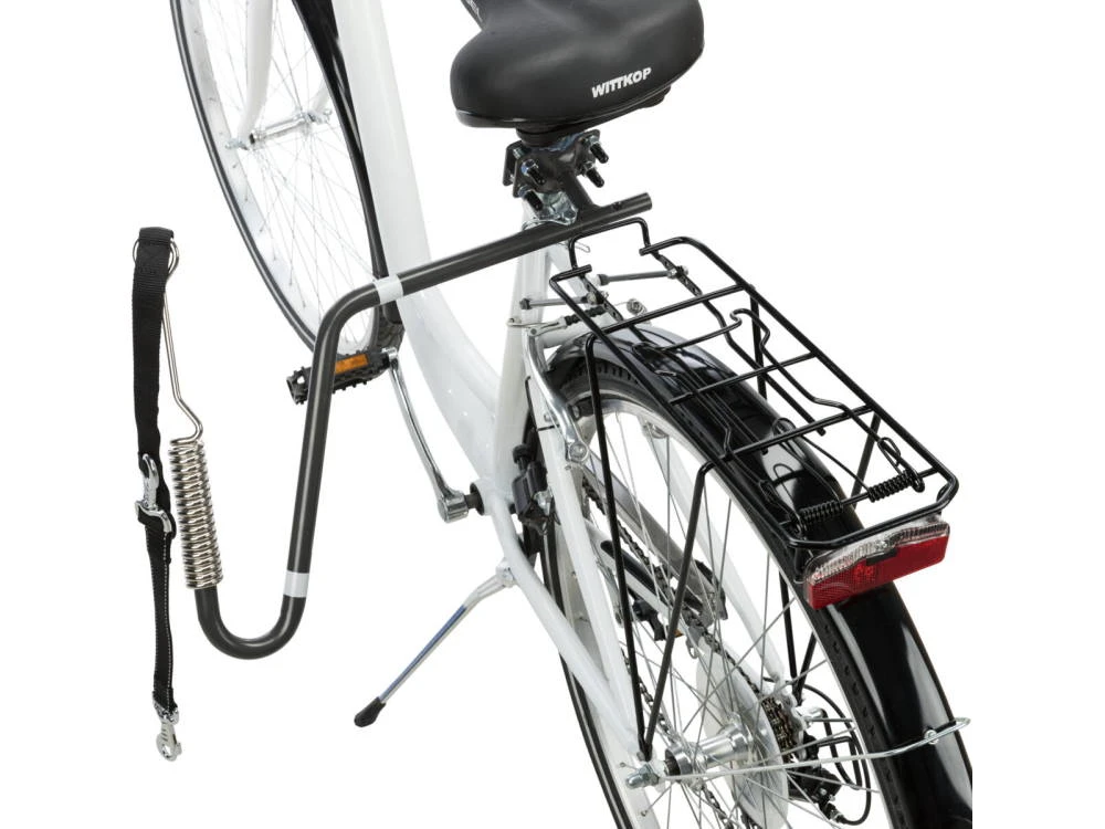 - Lieferumfang: Abstandhalter mit Befestigung für Sattelstange, Anleinsystem, Spiralfeder, Anleitung