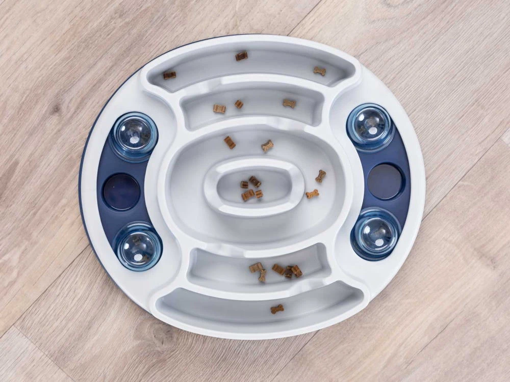 Gleichzeitig kannst Du das Slide & Feed Strategiespiel auch als Anti-Schlingnapf nutzen und deinem Hund sein Trockenfutter darüber geben.