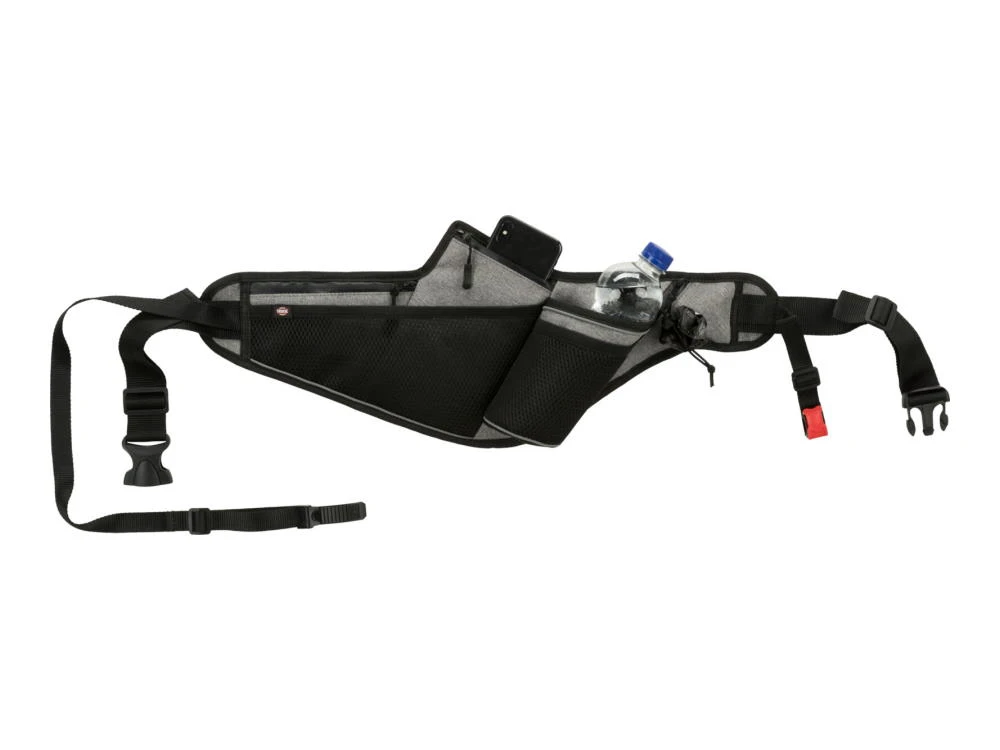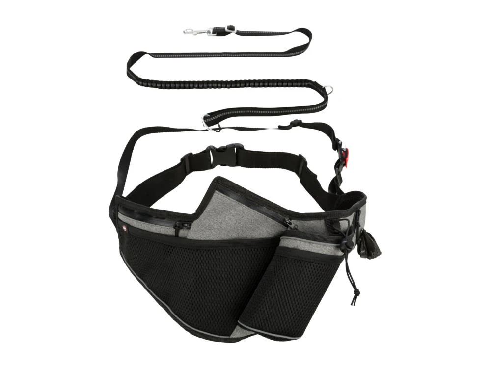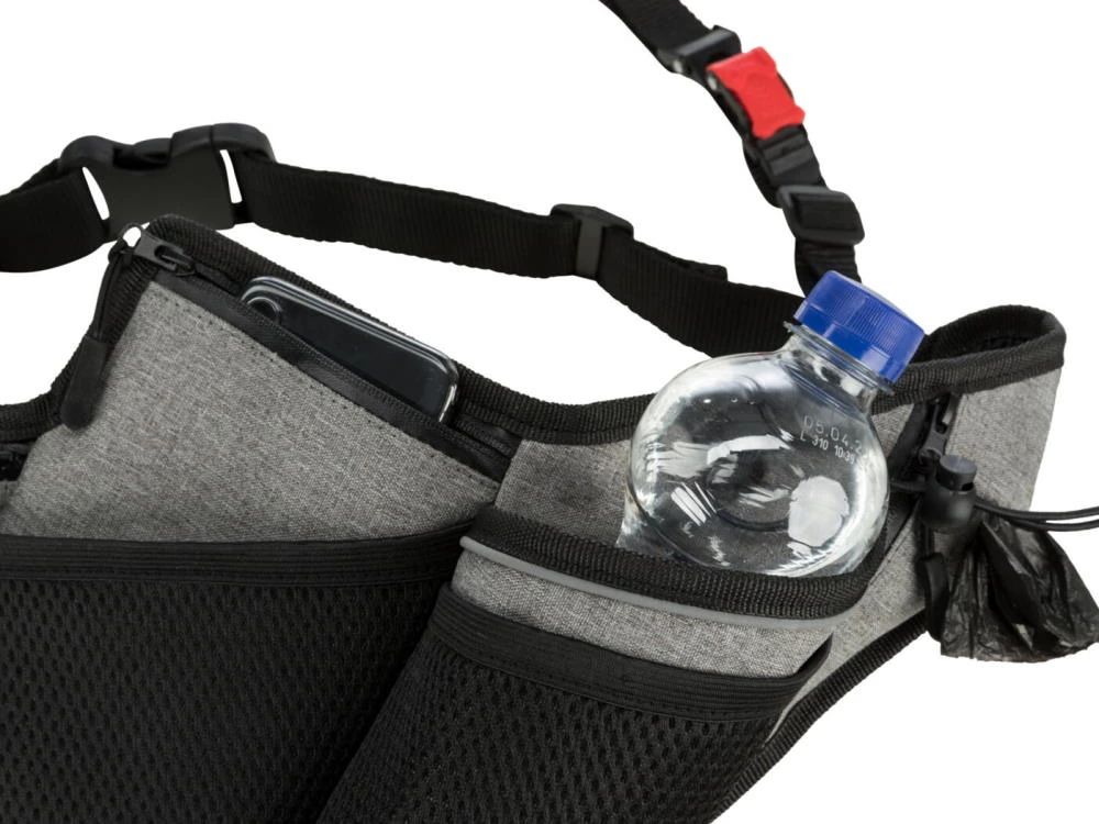 Schlüssel, Handy, Trinkflasche und Kotbeutel hast du so immer bei dir. Die integrierte Leine mit Ruckdämpfer ist stufenlos verstellbar, die Sicherheits-Funktion ermöglicht ein schnelles lösen der Leine.